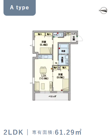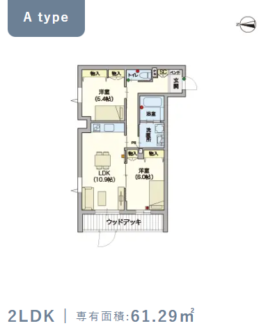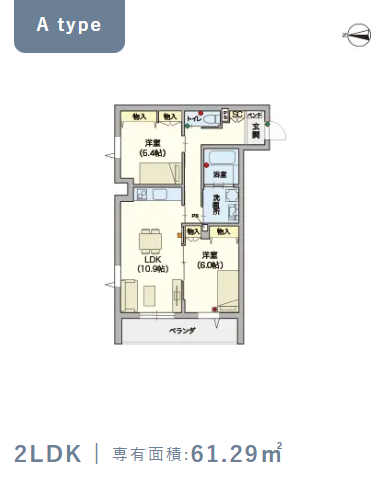 2階・Aタイプ(61.29m²) |
