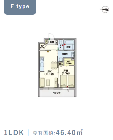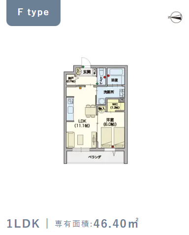 2階・Fタイプ(46.4m²) |