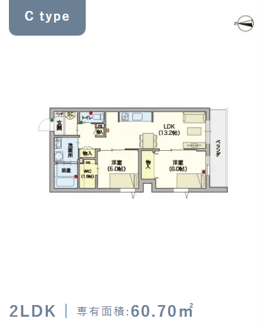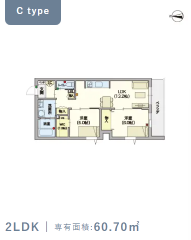2階・Cタイプ(60.7m²) |