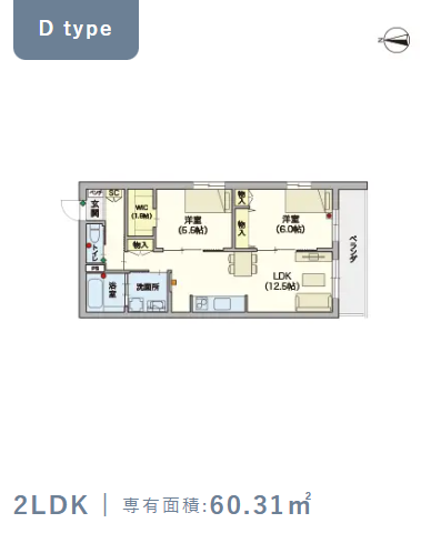 2階・Dタイプ(60.31m²) |