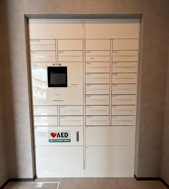 オートロック・共用エレベーター・共用コミュニティースペース・AED |