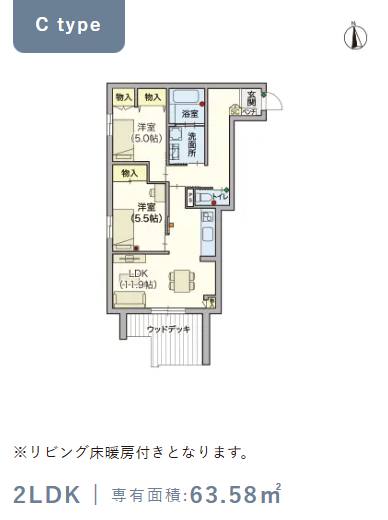 1階・Cタイプ(63.58m²) |