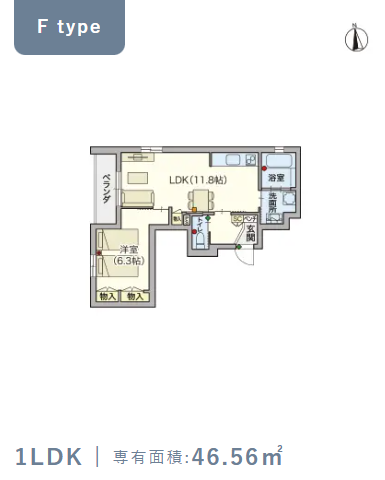2階・Fタイプ(46.56m²) |