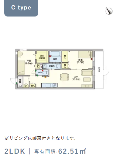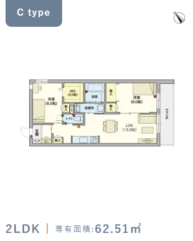 2階・Cタイプ(62.51m²) |