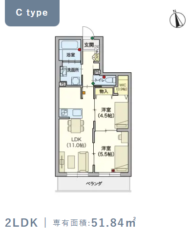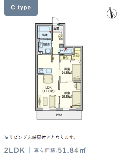 2階・Cタイプ(51.84m²) |