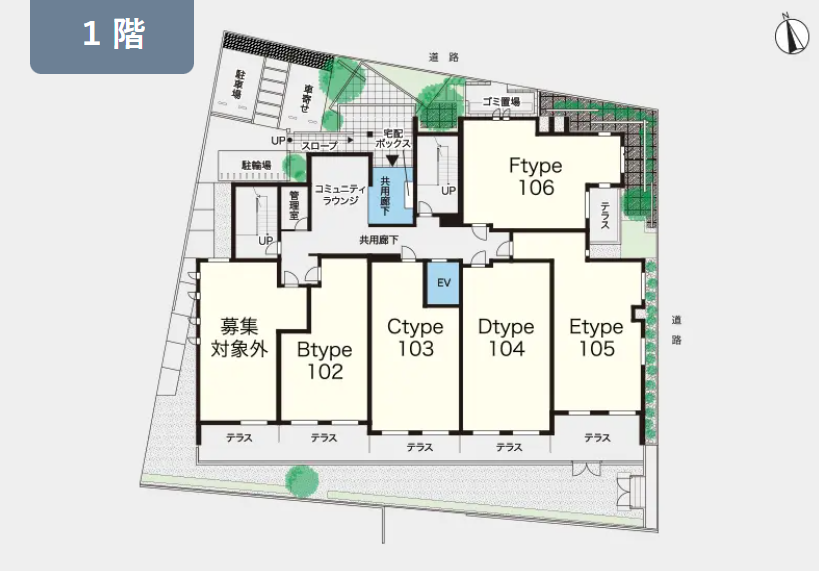 1階・Eタイプ(60.74m²) |