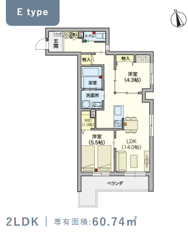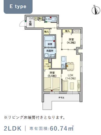 2階・Eタイプ(60.74m²) |