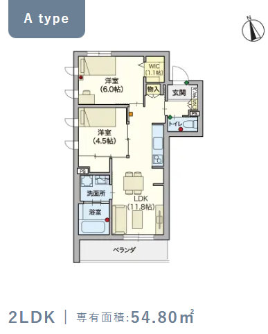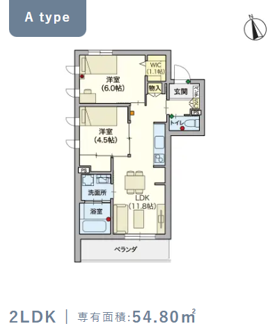 2階・Aタイプ(54.8m²) |