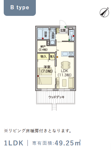 1階・Bタイプ(49.25m²) |