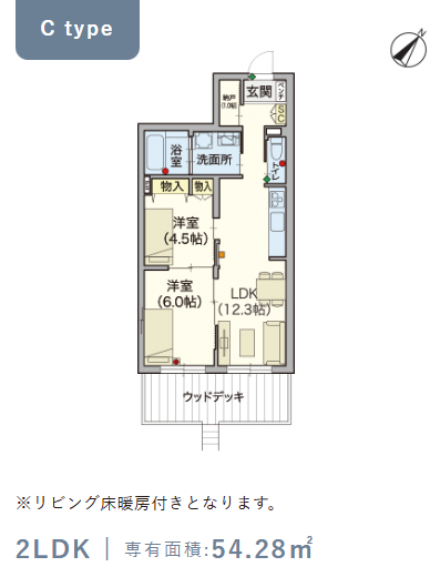 1階・Cタイプ(54.28m²) |