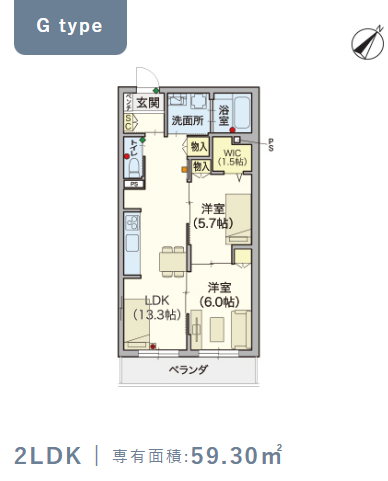 2階・Gタイプ(59.3m²) |