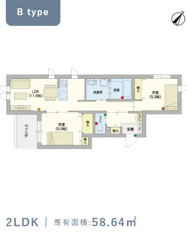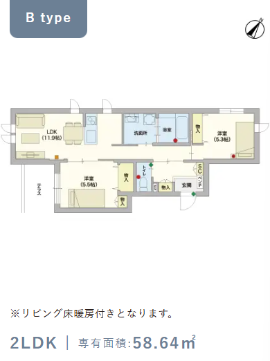2階・Bタイプ(58.64m²) |