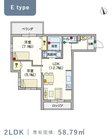 | 専有面積 | 58.79m² |