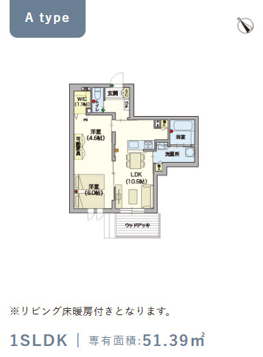1階・Aタイプ(51.39m²) |