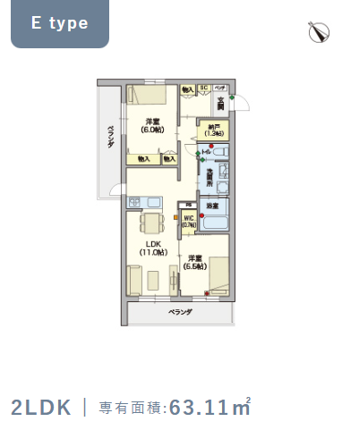 2階・Eタイプ(63.11m²) |