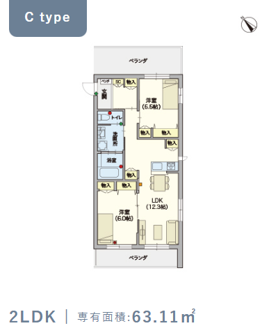 2階・Cタイプ(63.11m²) |