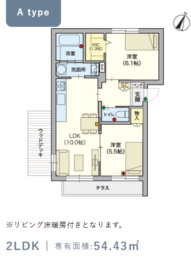 2階・Aタイプ(54.43m²) |