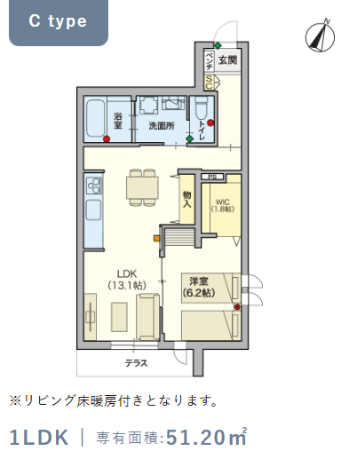 1階・Cタイプ(51.2m²) |
