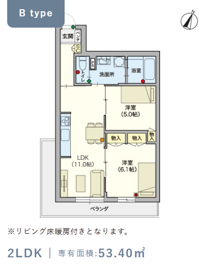 2階・Bタイプ(53.4m²) |