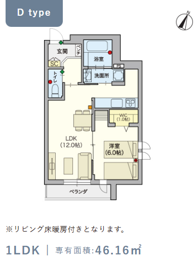 2階・Dタイプ(46.16m²) |