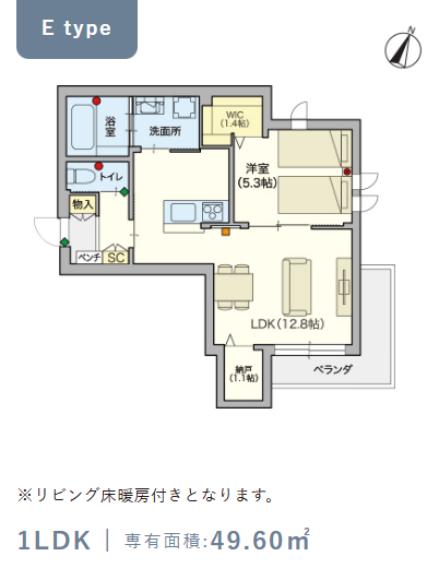 2階・Eタイプ(49.6m²) |