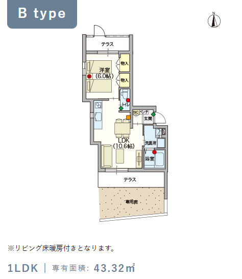 1階・Bタイプ(43.32m²) |