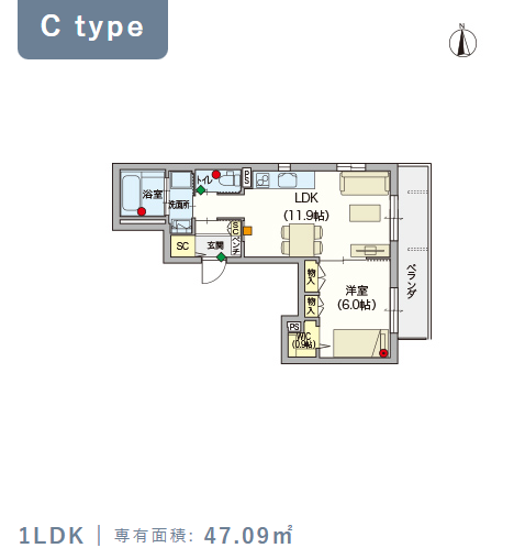 2階・Cタイプ(47.09m²) |