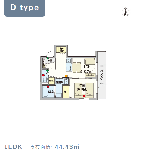 2階・Dタイプ(44.43m²) |