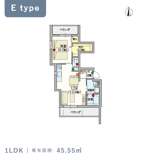 2階・Eタイプ(45.55m²) |