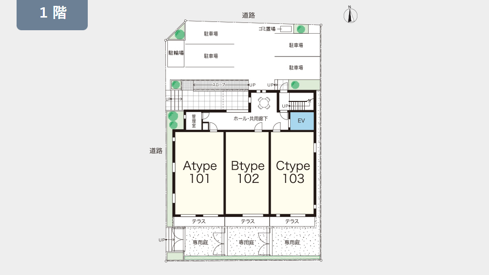 オートロック・共用エレベーター・共用コミュニティースペース・AED |