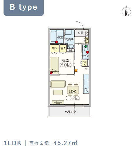 キッチン(IHヒーター付)・エアコン・洗面化粧台・洗浄暖房便座付トイレ・緊急通報装置・コート掛け・玄関収納・収納・浴室(浴室乾燥暖房機能付)・自動火災報知機・洗濯機置き場・ベランダ物干しフック・室内物干しフック・録画機能付テレビドアホン・インターネット完備(wi-fi)・UHF/BS |