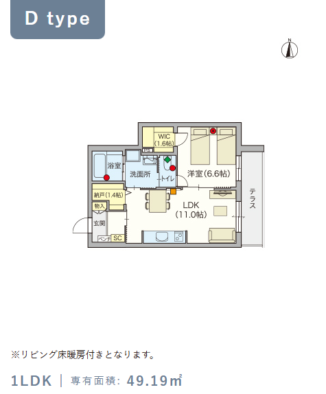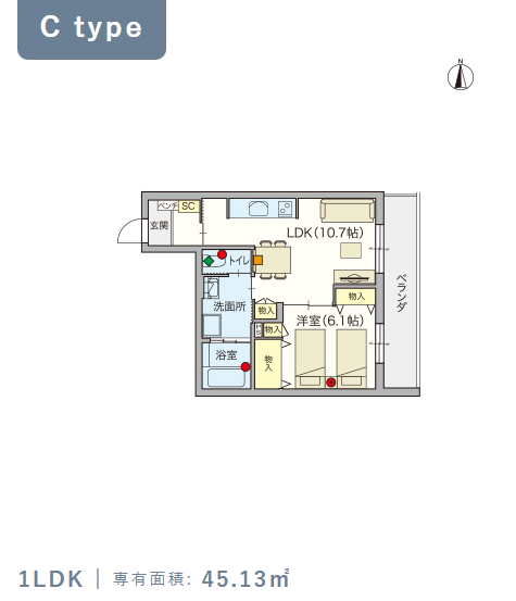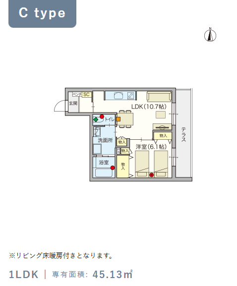 キッチン(IHヒーター付)・エアコン・洗面化粧台・洗浄暖房便座付トイレ・緊急通報装置・コート掛け・玄関収納・収納・浴室(浴室乾燥暖房機能付)・自動火災報知機・洗濯機置き場・ベランダ物干しフック・室内物干しフック・録画機能付テレビドアホン・インターネット完備(wi-fi)・UHF/BS |