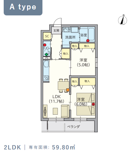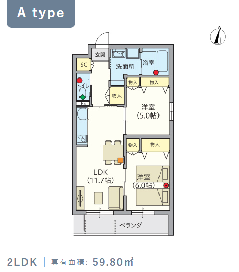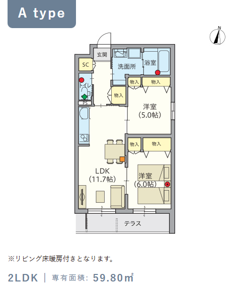 2階・Aタイプ(59.8m²) |