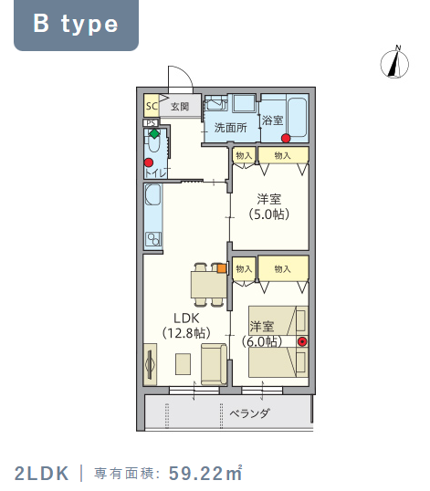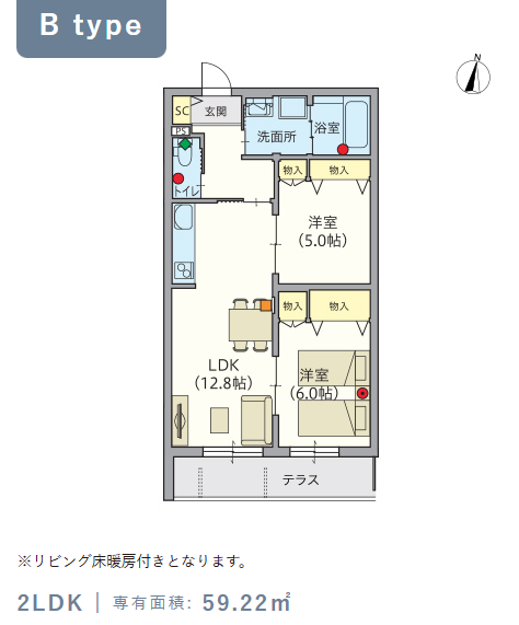 2階・Bタイプ(59.22m²) |