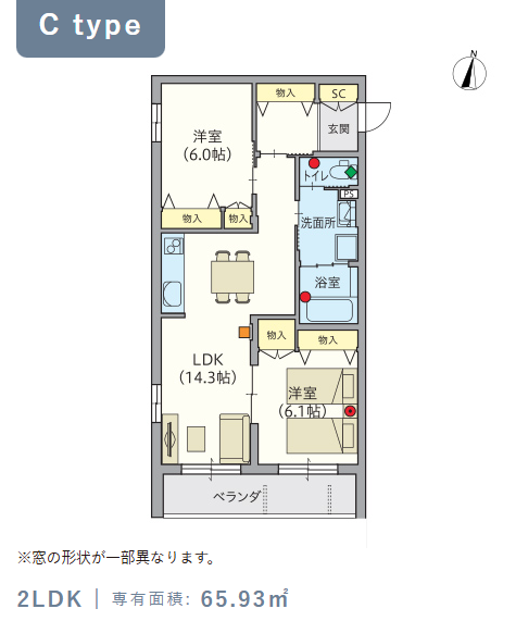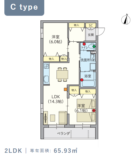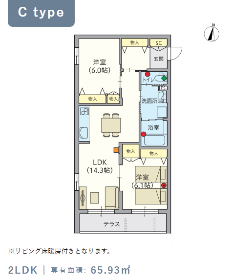 2階・Cタイプ(65.93m²) |