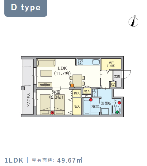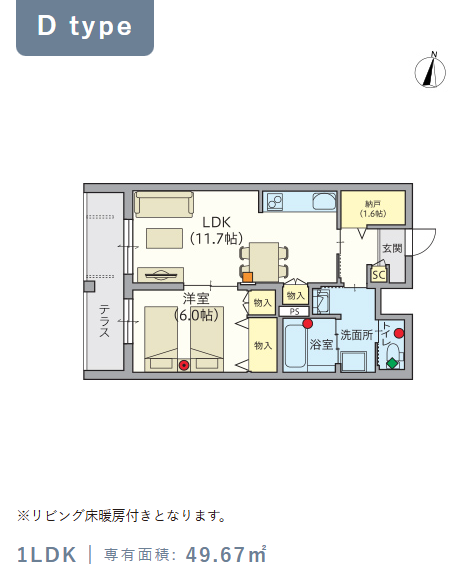 1階・Dタイプ(49.67m²) |