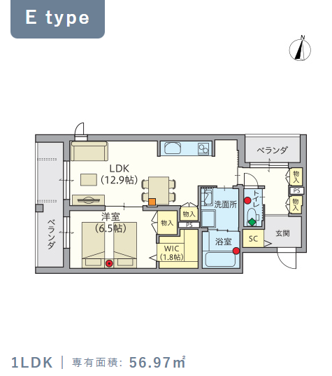 2階・Eタイプ(56.97m²) |