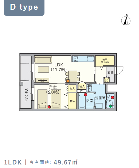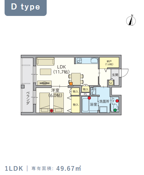 4階・Dタイプ(49.67m²) |