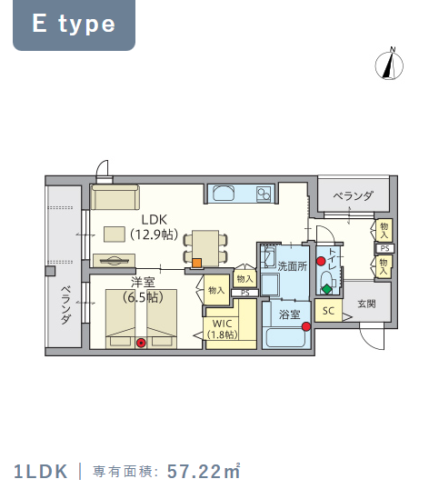4階・Eタイプ(57.22m²) |